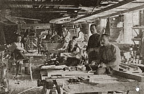 Kurikan ajokalutehtaan puutyöosasto jossa valmistettiin kärryjen korit ja puuosat. |