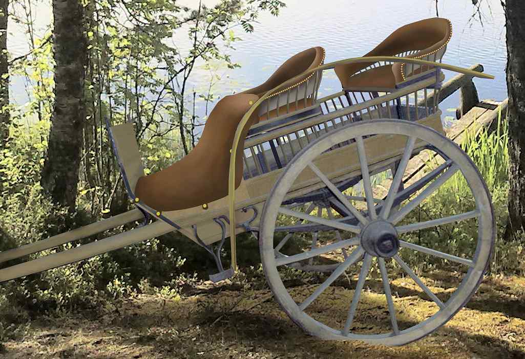 | Ajokalukauppias Pakan Matin veljen, Hermanni Kananojan valmistama rautapuikkoinen turunmalli 1890 luvulta. Tausta Rajalampi Pässilän kupeessa. | |